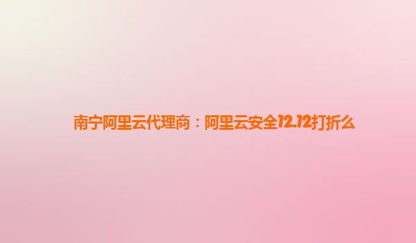 南寧阿里云代理商:阿里云安全12.12打折么