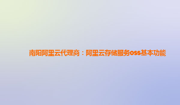 南陽阿里云代理商:阿里云存儲服務(wù)OSS基本功能