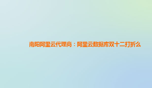 南陽阿里云代理商:阿里云數(shù)據(jù)庫雙十二打折么