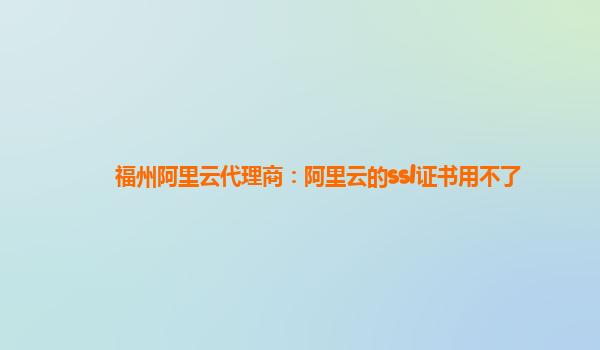 福州阿里云代理商:阿里云的ssl證書用不了