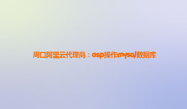 阿里云代理商 - ASP操作MySQL數(shù)據(jù)庫(kù)