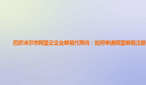 巴彥淖爾市阿里云企業(yè)郵箱代理商:如何申請阿里郵箱注冊入口