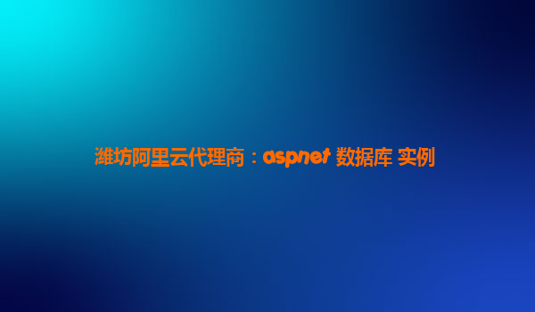 濰坊阿里云代理商:ASP.NET數據庫實例