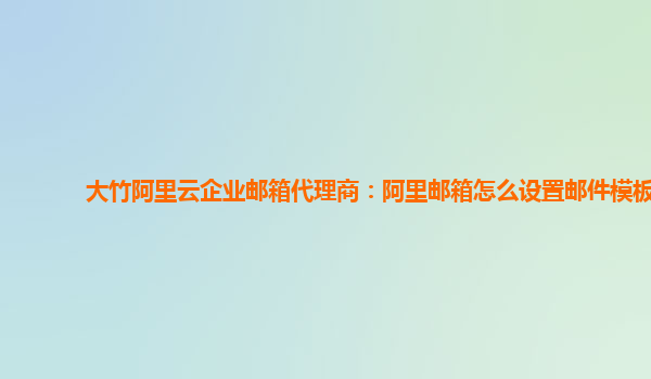 作為大竹阿里云企業(yè)郵箱代理商,我們將為您介紹如何設(shè)置郵件模板。