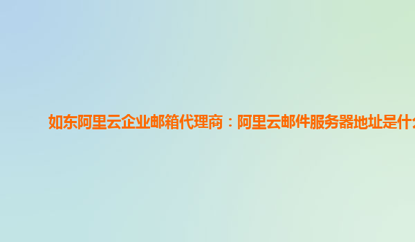 作為如東阿里云企業(yè)郵箱代理商,我們了解到阿里云企業(yè)郵箱的服務(wù)器地址是多樣且可靠的。本文將重點(diǎn)介紹阿里云郵件服務(wù)器地址以及阿里云企業(yè)郵箱的優(yōu)勢(shì)和好用之處。