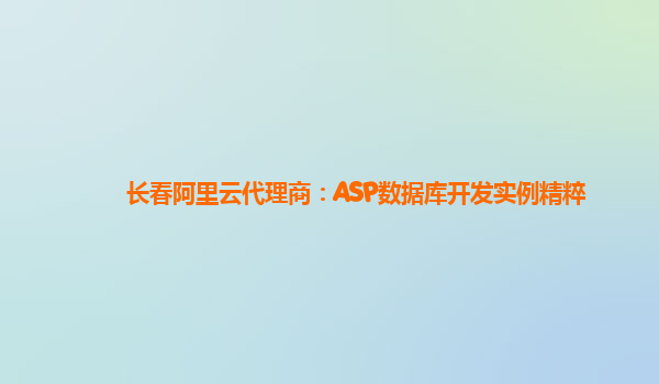 長春阿里云代理商:ASP數(shù)據(jù)庫開發(fā)實(shí)例精粹