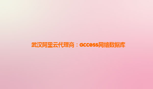武漢阿里云代理商:access網(wǎng)絡(luò)數(shù)據(jù)庫(kù)