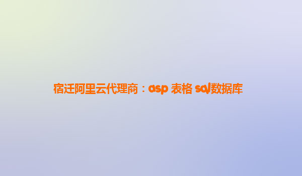 宿遷阿里云代理商:ASP 表格 SQL數據庫