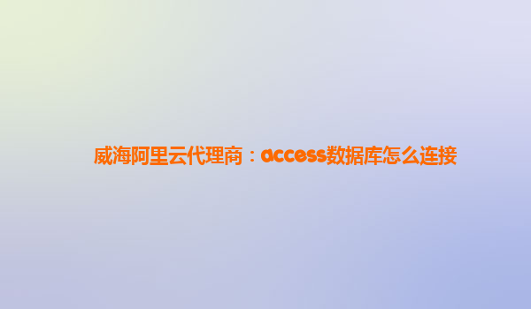 威海阿里云代理商:access數(shù)據(jù)庫怎么連接