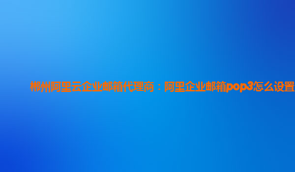 郴州阿里云企業(yè)郵箱代理商:阿里企業(yè)郵箱POP3怎么設置