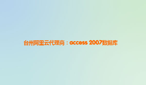 臺州阿里云代理商:Access 2007數(shù)據(jù)庫優(yōu)勢分析