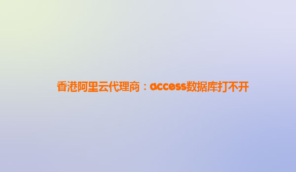 香港阿里云代理商:access數(shù)據(jù)庫打不開