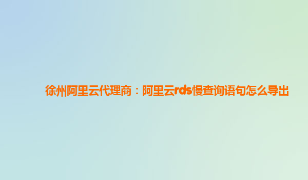 徐州阿里云代理商:阿里云RDS慢查詢語(yǔ)句如何導(dǎo)出