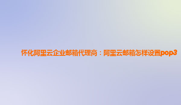 懷化阿里云企業(yè)郵箱代理商:阿里云郵箱怎樣設置pop3