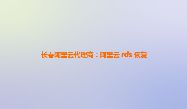 長春阿里云代理商:阿里云 RDS 恢復(fù)