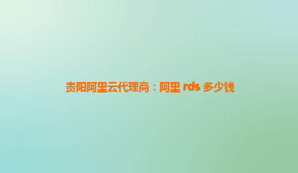 貴陽阿里云代理商:阿里 RDS 多少錢