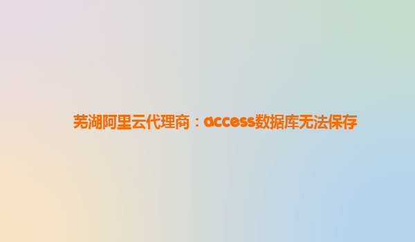 蕪湖阿里云代理商:Access數(shù)據(jù)庫無法保存