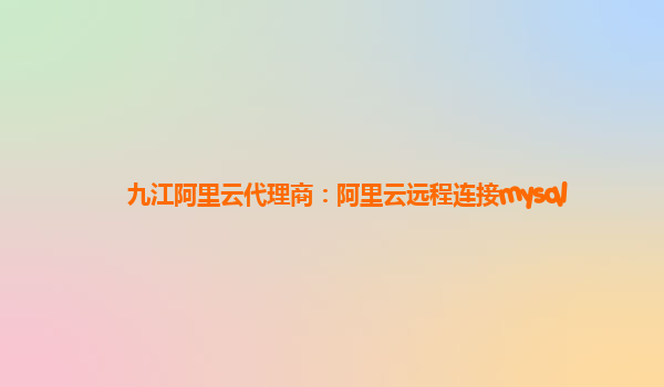 九江阿里云代理商:阿里云遠(yuǎn)程連接mysql
