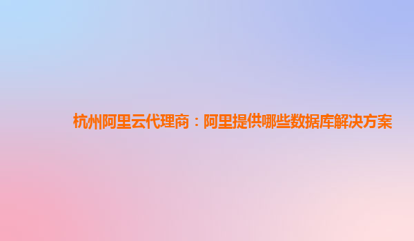 杭州阿里云代理商:阿里提供哪些數(shù)據(jù)庫解決方案