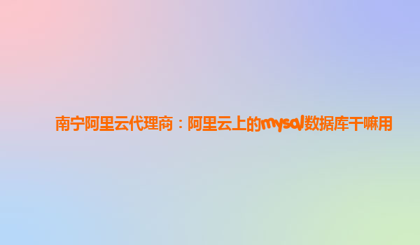 阿里云上的mysql數(shù)據(jù)庫(kù)干嘛用