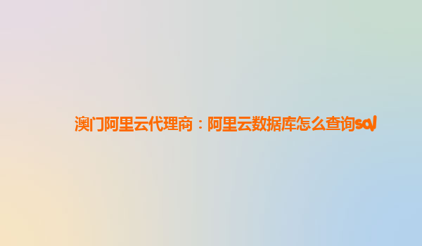 澳門阿里云代理商:阿里云數(shù)據(jù)庫怎么查詢sql