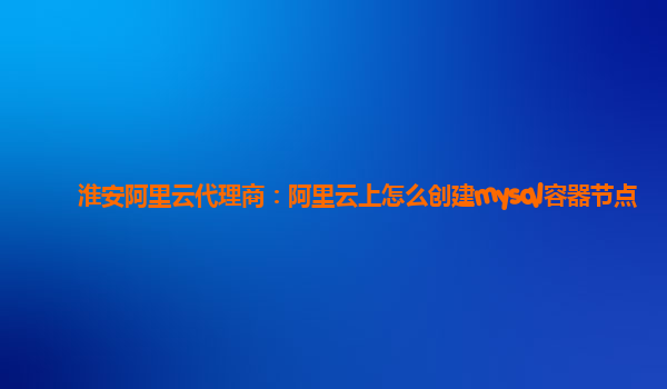 淮安阿里云代理商:阿里云上怎么創(chuàng)建mysql容器節(jié)點(diǎn)