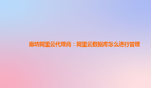 廊坊阿里云代理商:阿里云數(shù)據(jù)庫怎么進行管理