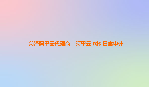 菏澤阿里云代理商:阿里云 RDS 日志審計