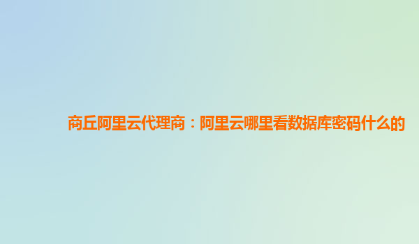 商丘阿里云代理商:阿里云數(shù)據(jù)庫密碼查看指南