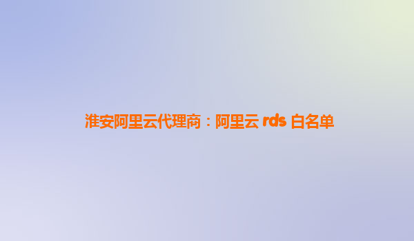 淮安阿里云代理商:阿里云 rds 白名單