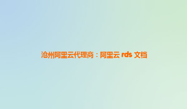 滄州阿里云代理商:阿里云RDS文檔解讀