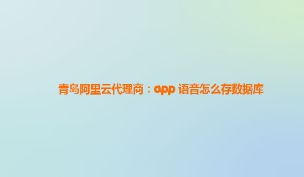 青島阿里云代理商:app 語(yǔ)音怎么存數(shù)據(jù)庫(kù)