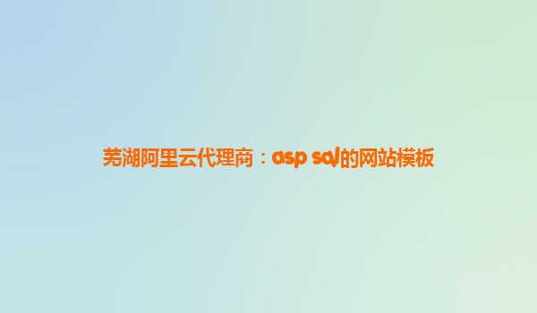 蕪湖阿里云代理商:asp+sql的網(wǎng)站模板