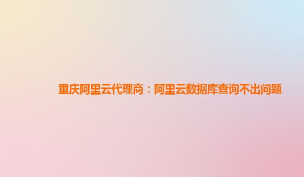重慶阿里云代理商:阿里云數(shù)據(jù)庫(kù)查詢不出問(wèn)題