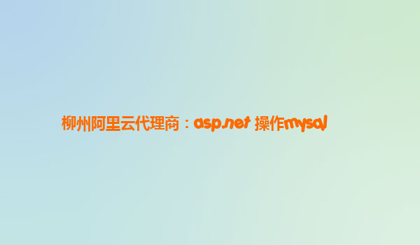 柳州阿里云代理商:asp.net 操作mysql