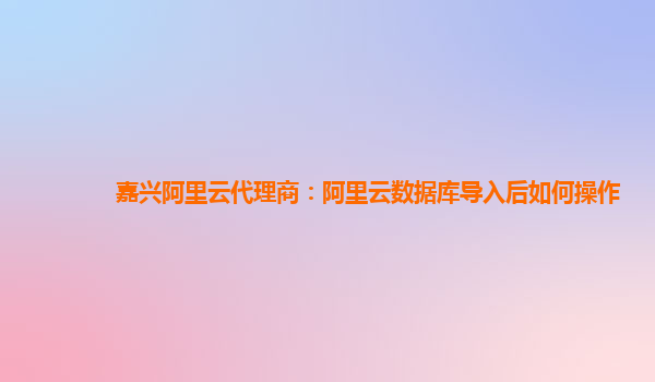阿里云數(shù)據(jù)庫(kù)導(dǎo)入后如何操作