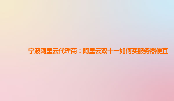 寧波阿里云代理商:阿里云雙十一如何買服務(wù)器便宜