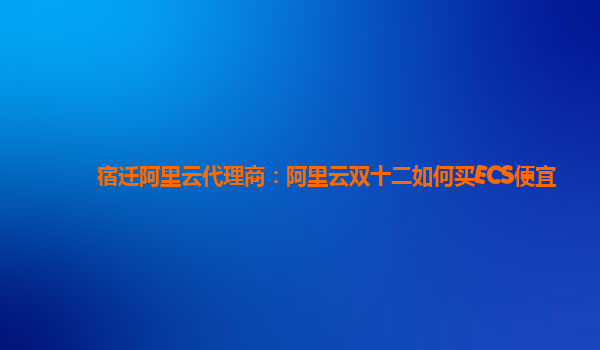 宿遷阿里云代理商:阿里云雙十二如何買ECS便宜
