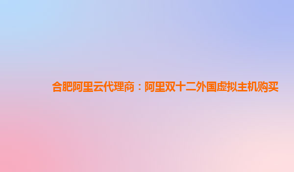 合肥阿里云代理商:阿里雙十二外國虛擬主機購買