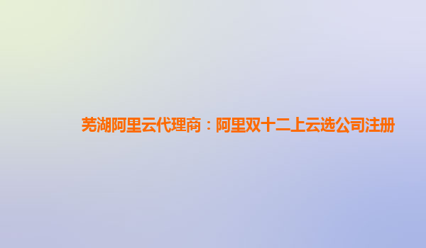 蕪湖阿里云代理商:阿里雙十二上云選公司注冊