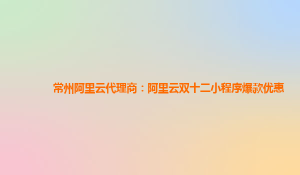 常州阿里云代理商:阿里云雙十二小程序爆款優(yōu)惠