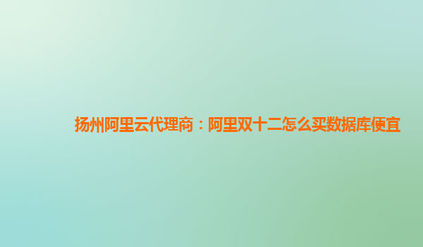 揚州阿里云代理商:阿里雙十二怎么買數據庫便宜