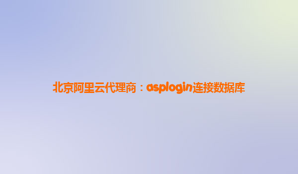 北京阿里云代理商:asplogin連接數(shù)據(jù)庫