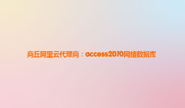 商丘阿里云代理商:access2010網(wǎng)絡(luò)數(shù)據(jù)庫