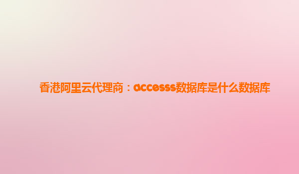 香港阿里云代理商:accesss數(shù)據(jù)庫是什么數(shù)據(jù)庫