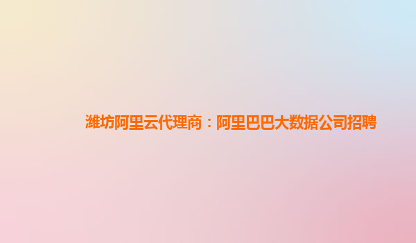 濰坊阿里云代理商招聘:阿里巴巴大數(shù)據(jù)公司