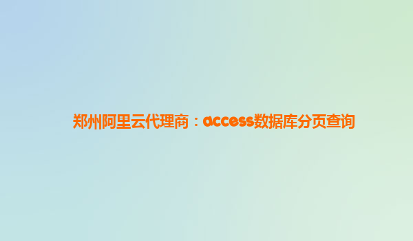 鄭州阿里云代理商:access數(shù)據(jù)庫分頁查詢