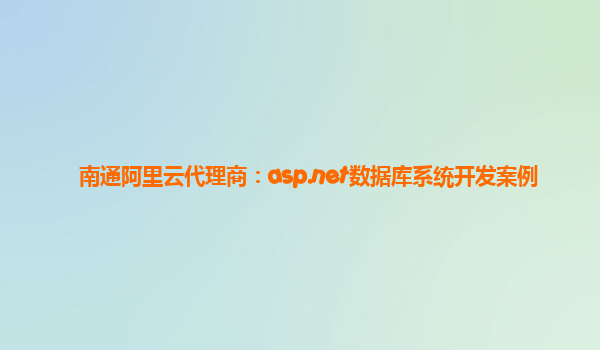 南通阿里云代理商:asp.net數(shù)據(jù)庫系統(tǒng)開發(fā)案例