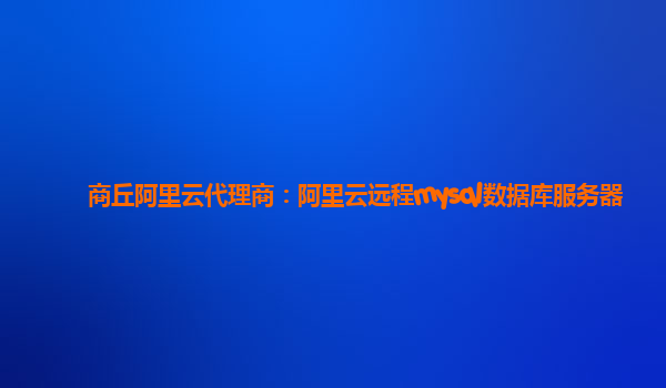 商丘阿里云代理商:阿里云遠程MySQL數(shù)據(jù)庫服務(wù)器