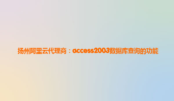 揚(yáng)州阿里云代理商:access2003數(shù)據(jù)庫(kù)查詢(xún)的功能